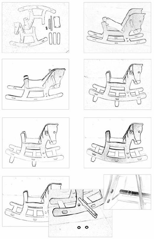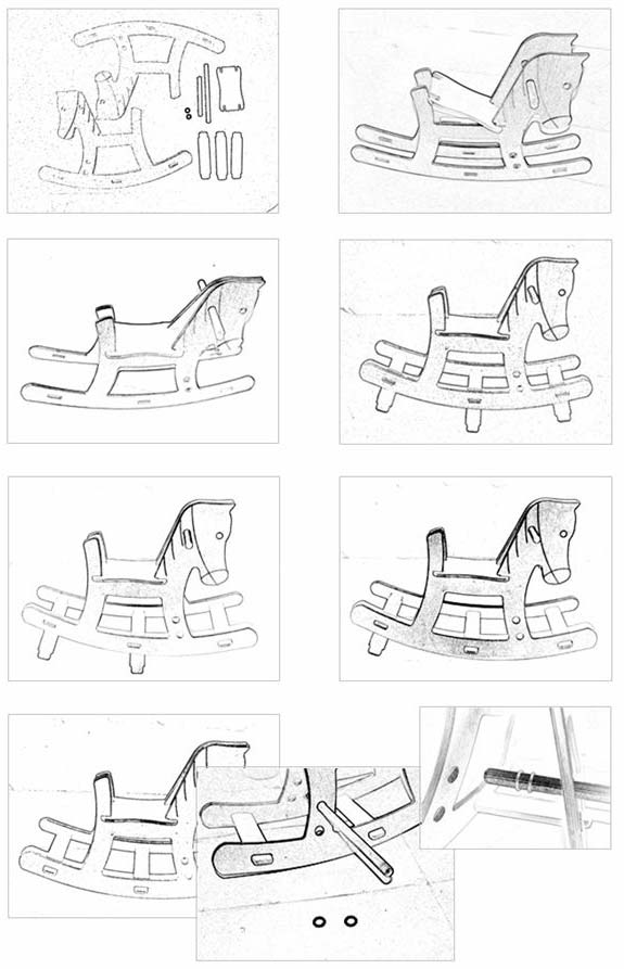 Das Cavipa Schaukelpferd besteht aus nur 10 Teilen. Es kann ohne Werkzeuge zusammengesetzt und wieder zerlegt werden.